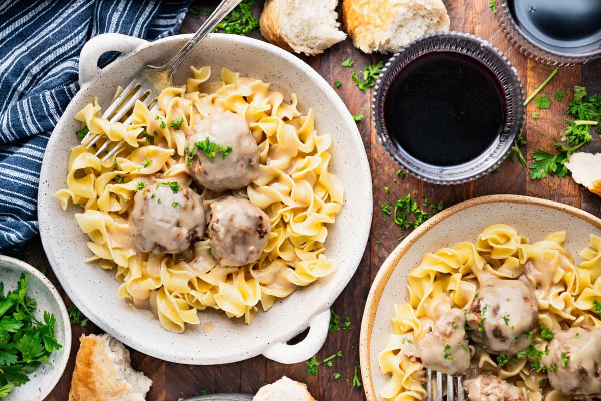 Unlike Italian meatballs that are typically served in a tomato-based sauce, Swedish meatballs are paired with a creamy sauce that’s similar to an American gravy. To make this quick and easy gravy, you’ll add flour to the pan drippings to make a roux, and then gradually stream in beef broth and half-and-half (or cream). It’s simple, flavorful, and so easy!