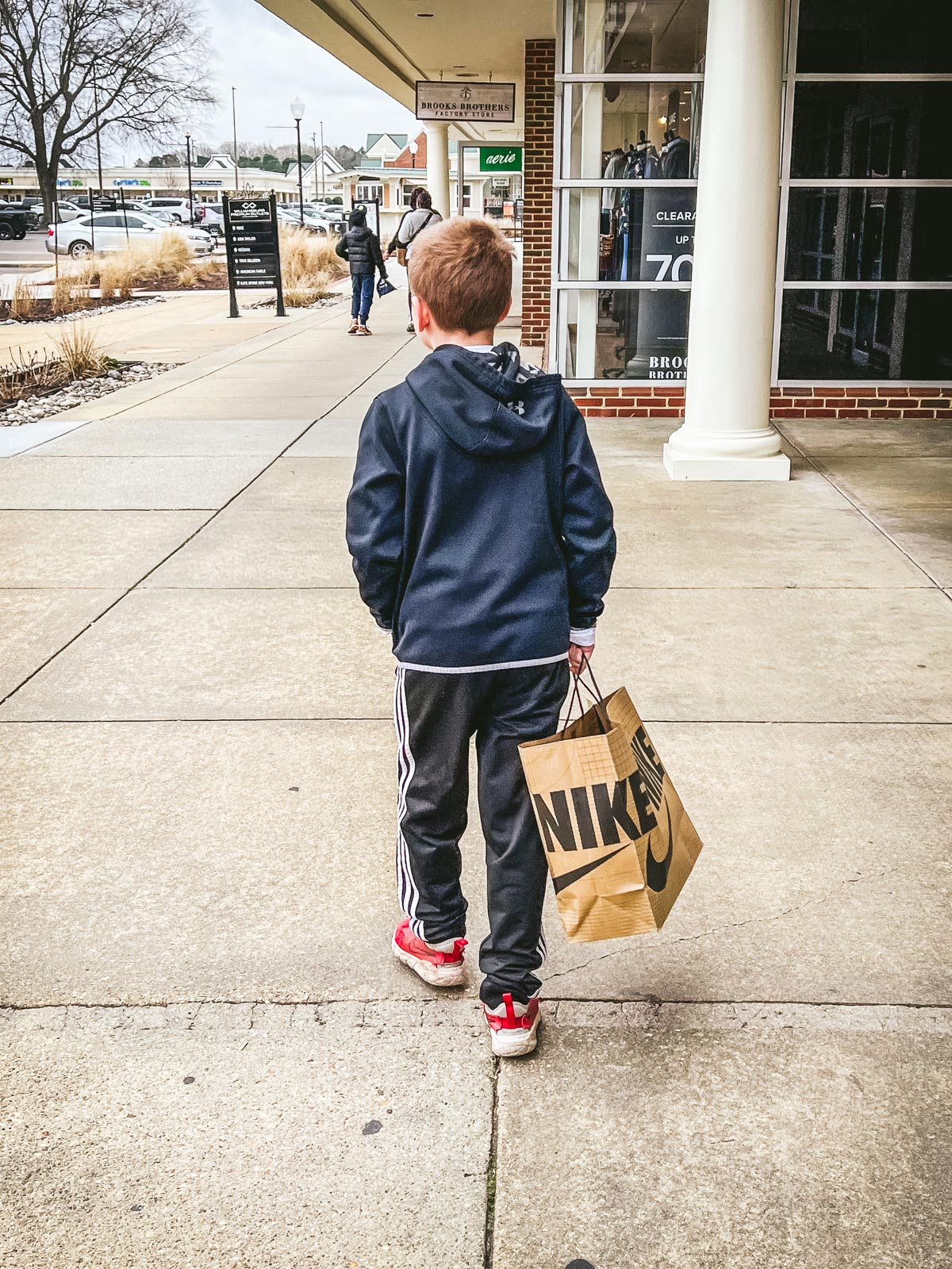 Spencer, Gibbs, and I left the house early on Saturday morning to join Keith and Casey in Williamsburg for the day. It was rainy and cold — not exactly good playing or spectating weather — but we survived! In between Casey’s two games, we did some very quick outlet shopping…