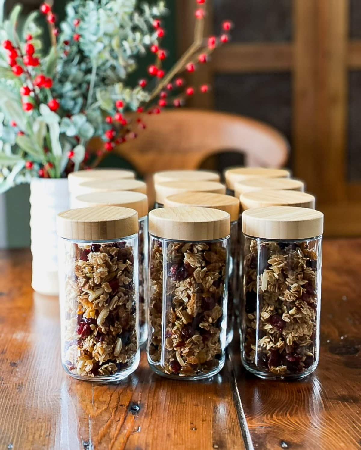 and I made a few batches of homemade granola. I filled 12 of these jars to gift to my neighbors!