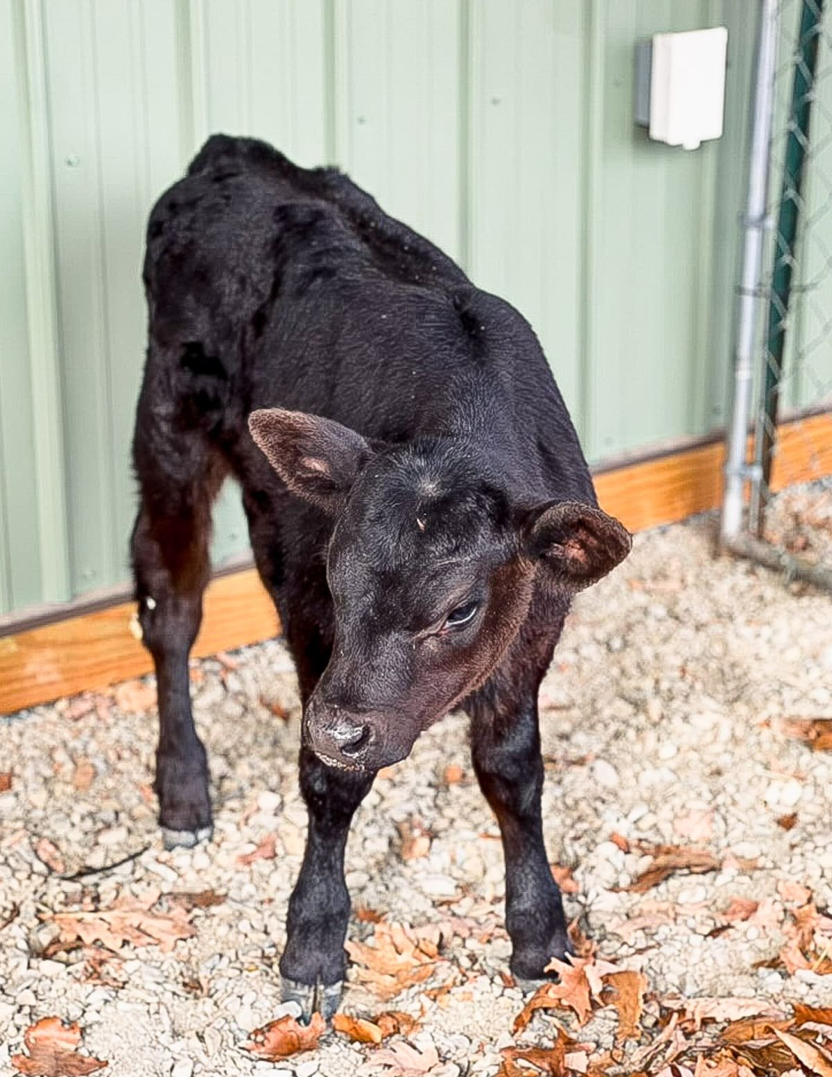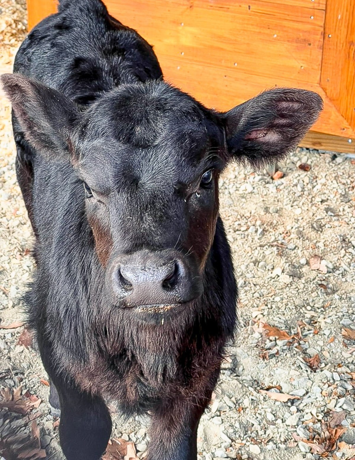 I met Snowflake, her two-week-old bottle-fed calf. So cute!!