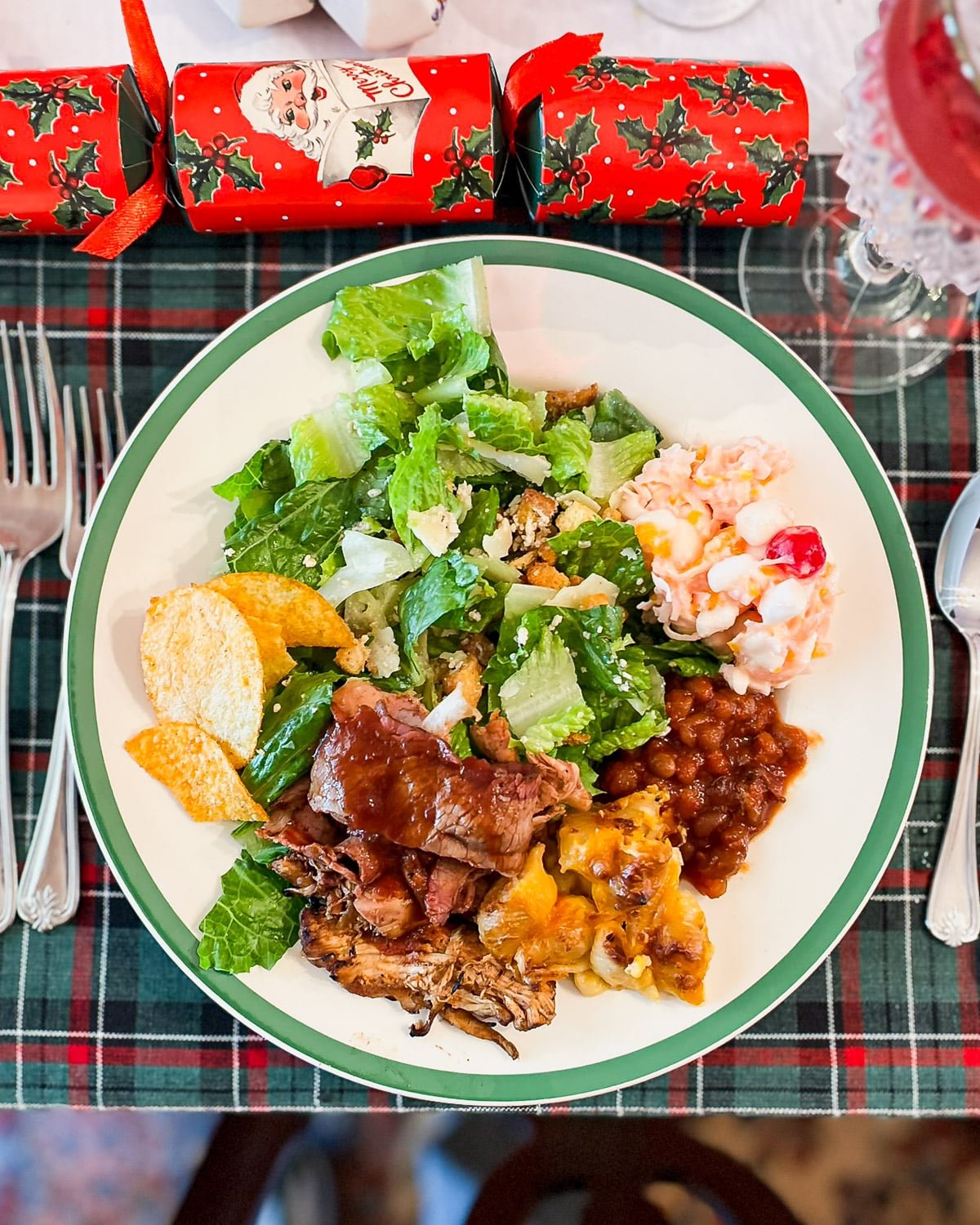 My in-law’s served a delicious bbq lunch complete with pulled pork, pulled chicken, brisket, mac and cheese, baked beans, salad, ambrosia, and more.