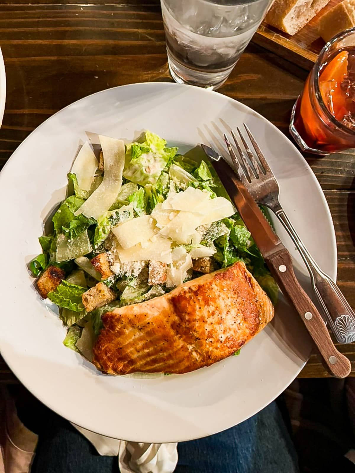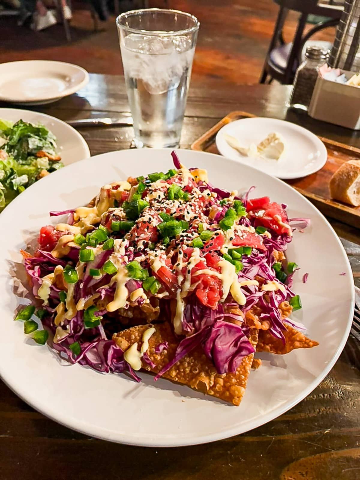 We shared an enormous plate of ahi tuna “nachos” with fried wontons for an appetizer (it was incredibly good!), and I ordered the salmon Caesar salad for my entree.