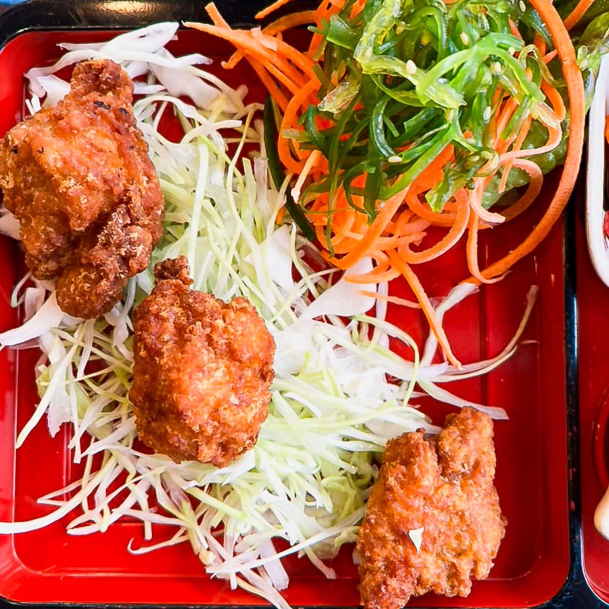 …and then they gave us each these complimentary fried chicken nuggets, plus my entree: the lemongrass chicken.