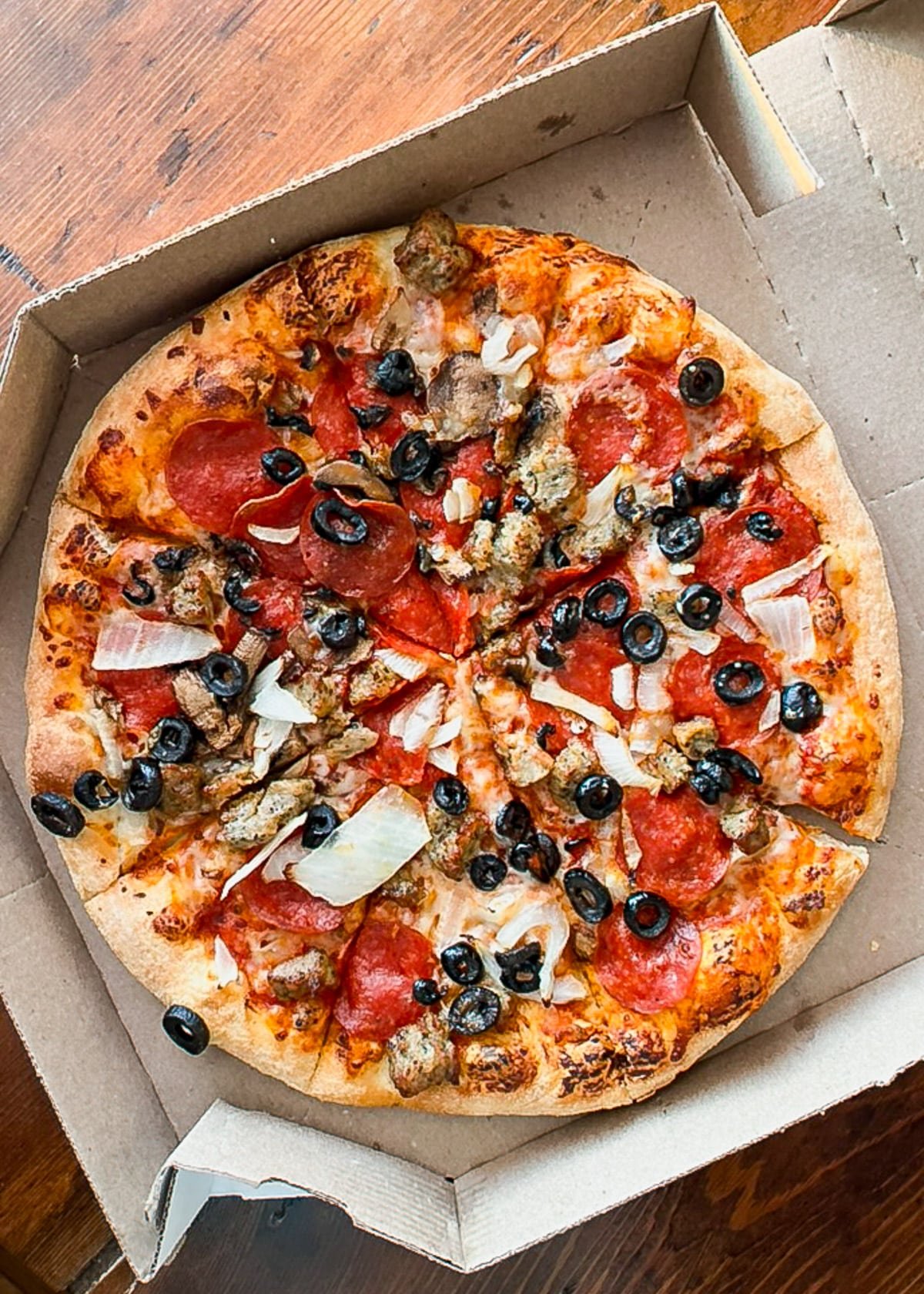 On the way home from golf, we picked up take-out pizzas for supper. Love a night off from dishes!